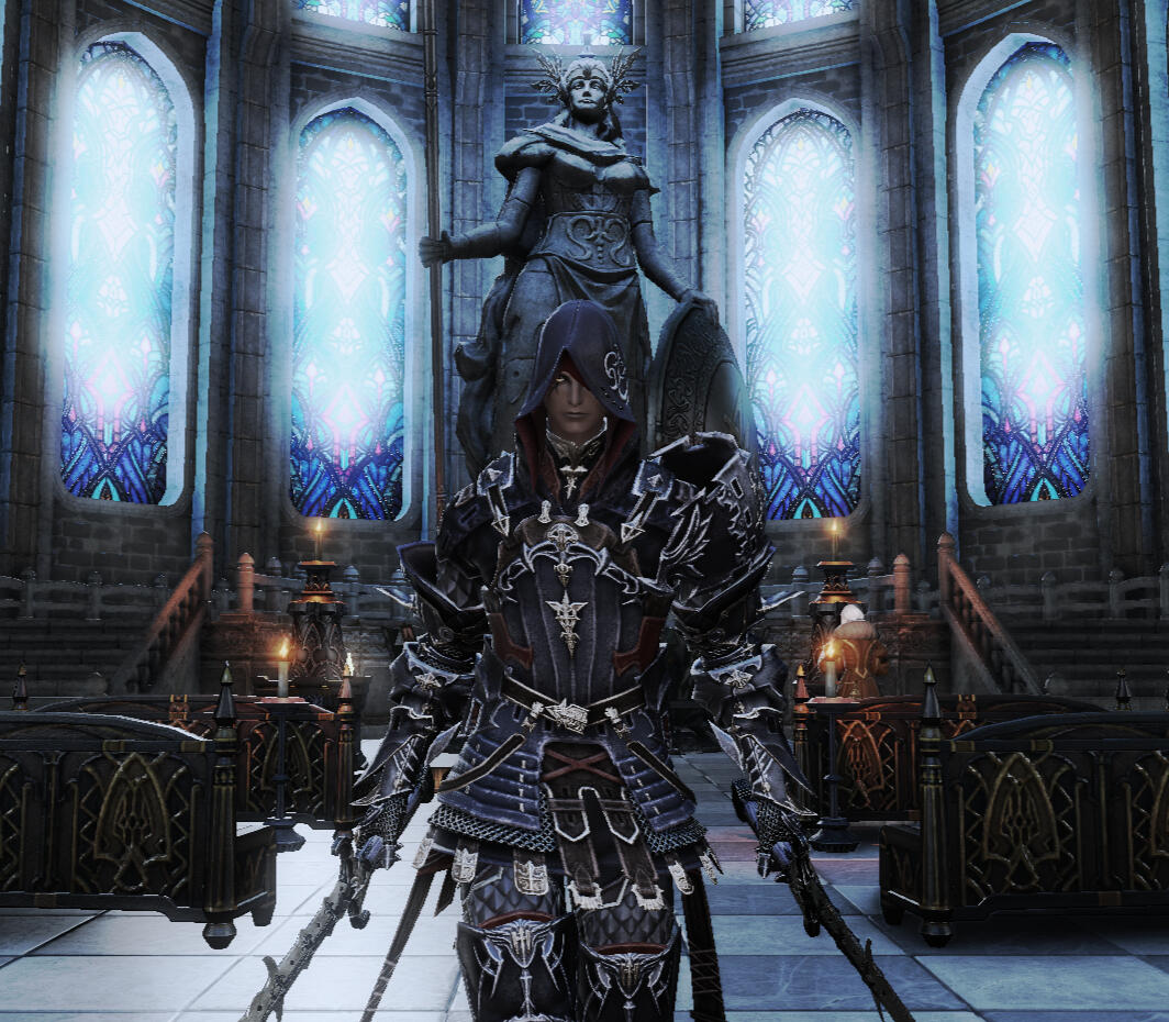 As a Duskwight, Chrysagon was orphaned when the Dragonsong war spilled into the caves of his kin and killed nearly all of them. He had been raised with the false name "Galen" to hide him as heir to his his family. He would be raised by Dragoons and forged into the warrior he is today. But not before the Garlean project Yggsdrasil wished to study the ways of Dragoons and their enhancements. "Galen" had lived a life just starting to get some acknowledgement as an orphaned Duskwight and had been knighted at 30 when he would be captured while travelling to Idyllshire on a mission. He fought hard and killed many of those who would capture him but was overcome and spirited away to Ilsabard. There he would meet his fellow test subjects and would be tortured to give up secrets of the dragoons. It took time but the empire did break him and then started their experiments. But while the empire had wrested the secrets he knew of dragoons from him, they had not killed his defiance. He was not as broken as they thought and he would let his acute hearing help him learn many secrets. When he met and was trialed in the experiments with Duncan Greystark and Valerus Volsung, he saw hope and began to mastermind an escape. In time that’s exactly what happened and at 34 he was free again in the world. But as the escapees had to spread out and lay low he returned to his Duskwight kin for a time and found little remaining of his decimated kin. Just a bitterness among many of those who dwelled in their caves and he returned to Ishgard. Despite being resented somewhat for being a Duskwight he was used to this life and he fought for the Holy See for his own reasons not those of the church. In truth, it is because he had little else. "Galen" for the most part hunted solitary as a dragoon making his own war against the dragons who killed his kin. And despite the revelations of the end of the Dragonsong war he does not forgive the Dravanians for the slaughter they made of the only kin he ever had. While "Galen" has had lovers he has let none close to him; and he is slow to trust. Those whom he survived project Yggsdrasil with one of the only few exceptions. "Galen" has often worked to keep the only friends he has known together. His slowed aging and other enhancements has done little to improve his general fatalistic mood. Thus far he keeps things simple, the hunt is what he knows and he desires little else. But he does have a sense of loyalty to those who have helped him. And in that is the only side of him that could be called tender. He kept aloof during much of Duncan Greystark's and Valerus Volsung’s struggles but he was always there when needed to fight for the only people he considered friends. He has to some degree warmed to Duncan’s daughters as well as they are the closest he has to kin. Yet due to the death of his first family he stays away save when needed due to the fear his ill fortune might rub off on his new family. He will die for his friends but he will not have any die on account of him. He has fought through his time in Ishgard enough to have renown despite having to like Duncan disappear for a time only to resurface. He also embraced the life as a dark knight secretly smiting those who are corrupt, making rides of retribution at night on a dark horse and armor.