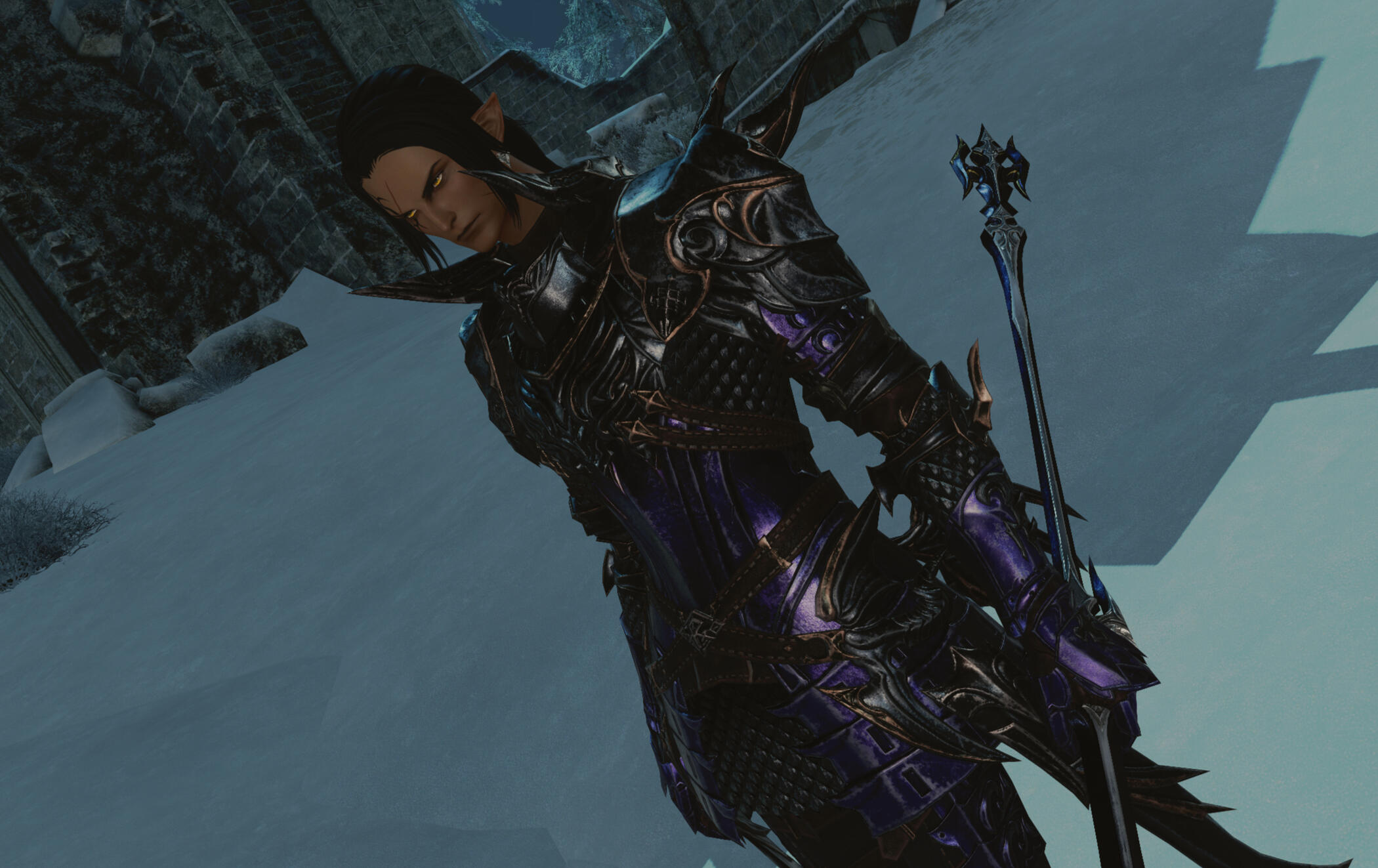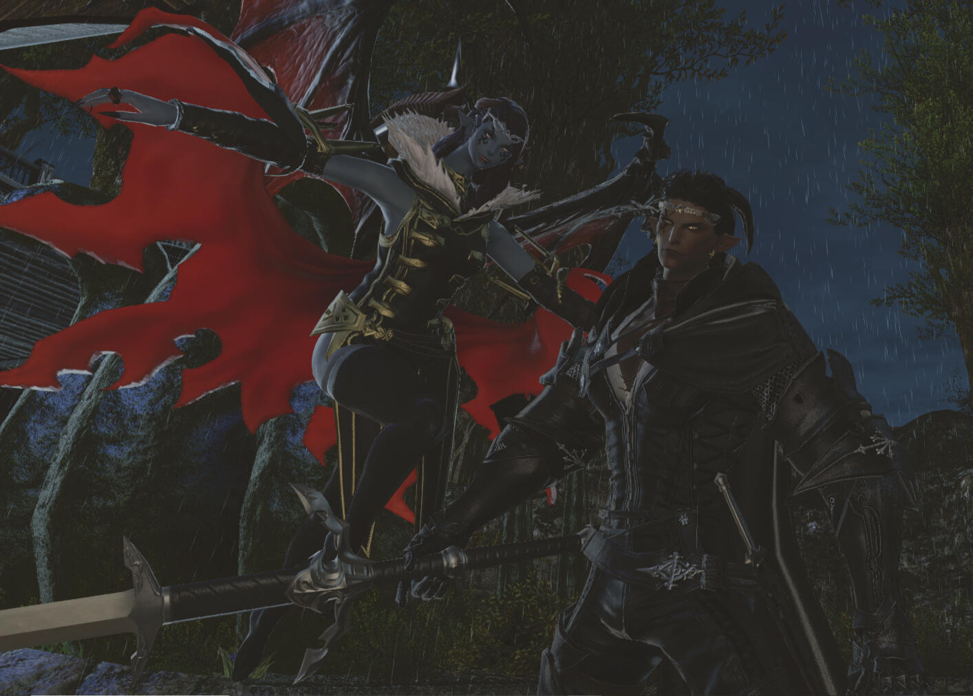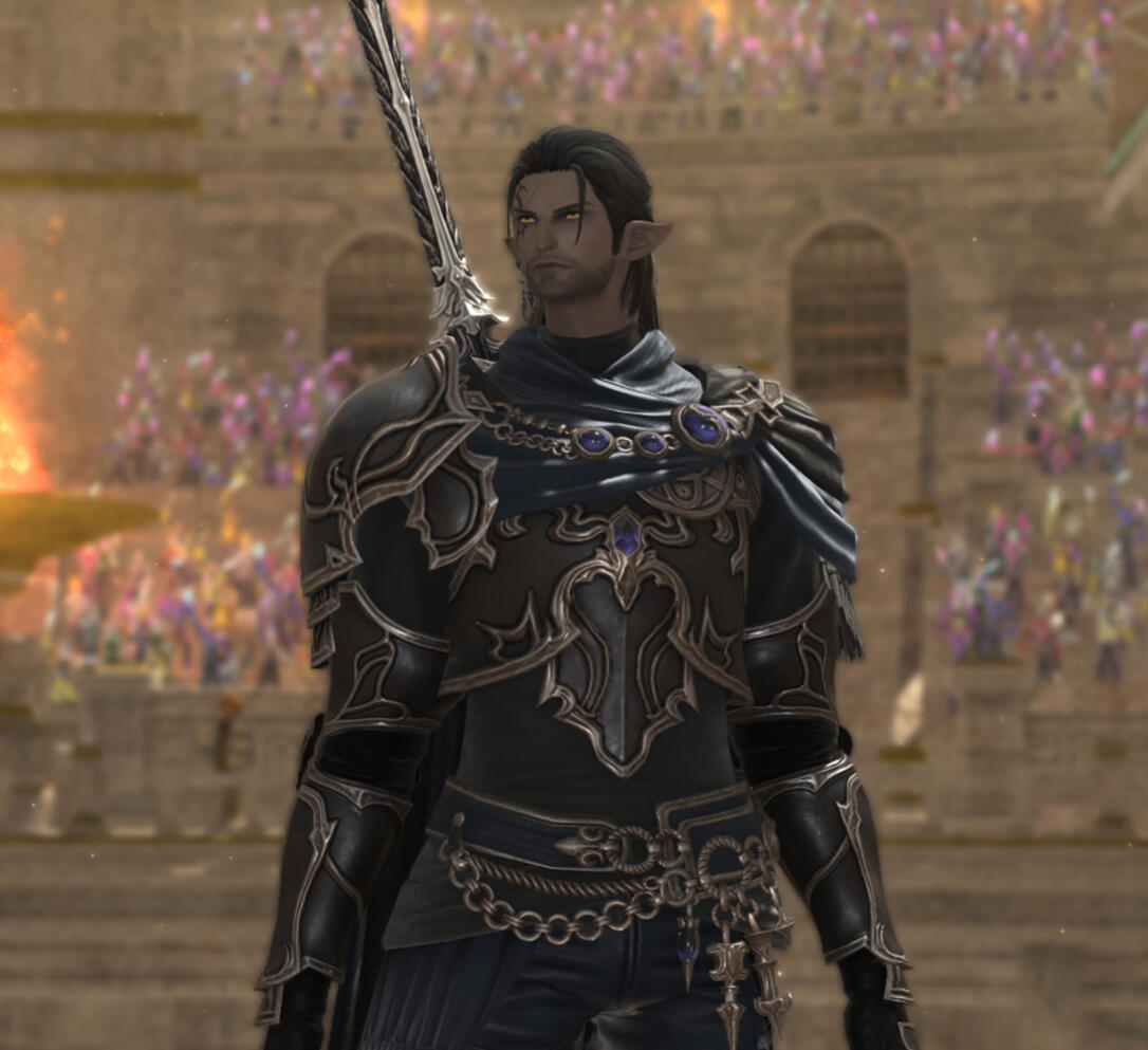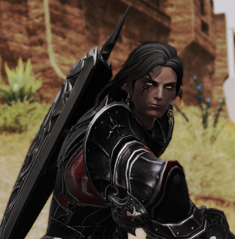 Personality: Grim and taciturn he does not act impulsively but works as a slow knife, any plans he makes are well thought out and designed to succeed. He often seeks vengeance on Garlemald with Duncan and while he appears quiet, his plans when he does speak are often flawless. By the same token he hides the attachments he does have and does not make much in the way of new ones. For most a scowling face or a knitted brow of this dour Duskwight is all people know or care to know about him. A look from his scarred face is usually enough to make people turn away.He has made many attempts to find affection in this world. But his life and his path have not led to any lasting bonds, making him harder than before. Recently he discovered his true heritage and name of a Bastard Royal house of Gelmorra, Sangdeloup. He learned his whole, true name of Chrysagon Sangdeloup. His lover at the time wished no part of this and they parted ways only to now have a Duskwight refugee he helped on his trip to the Tam Tam Deepcroft become his new constant companion. Zamari Vairemont is descended from a house that had always served the Sangdeloup and stands with him now, swearing her loyalty. More have sworn to him and he has returned to Ishgard now with an ennobled bloodline he is aware of, though he is not yet used to it, he has started to accumulate followers among his Duskwight kin.Age:91